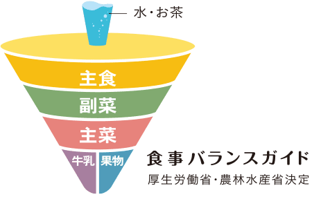 右の図は、厚生労働省と農林水産省が共同で定めた「食事バランスガイド」。